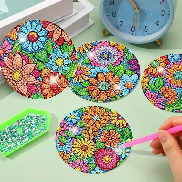 16 Pcs Diamond Art Painting Coaster Kit Flowers DIY Crafts Kit With Holder And Wooden Pad Non Slip Coaster Art Supplies For Adults And Beginner Ideal Mother’s Day Easter Gift