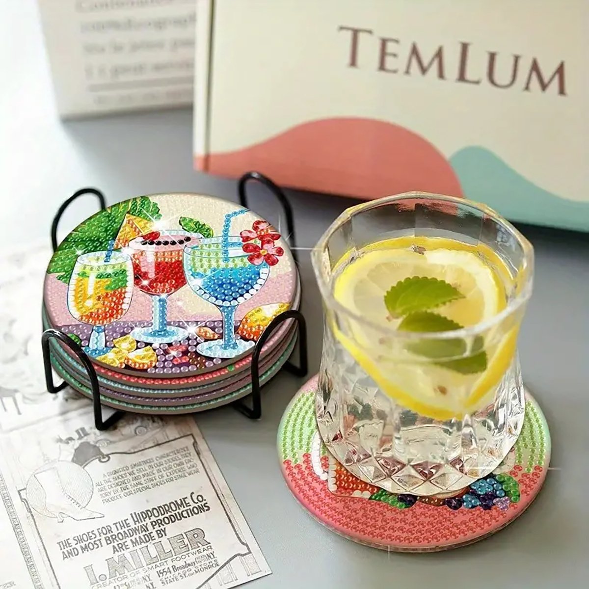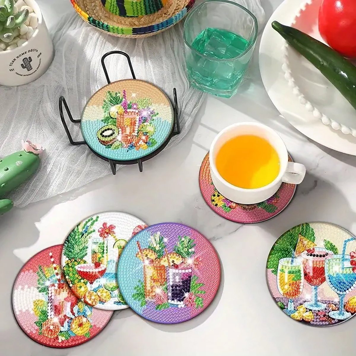 Diamond Painting Coaster Kits with Holder, Suitable for Adults&Beginners, for DIY Drink Coaster, Home Decoration and Great Gifts